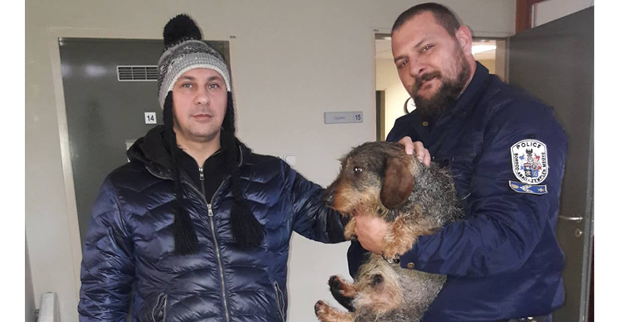 Később az egyenruhások kiderítették, hogy ki a kutya tulajdonosa és értesítették, hogy megtalálták a kutyáját. A férfi megköszönte a rendőrök munkáját és épségben hazavitte szálkásszőrű tacskóját.