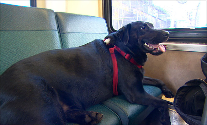 Egyedül utazik a buszon egy seattle-i fekete labrador