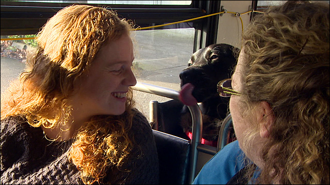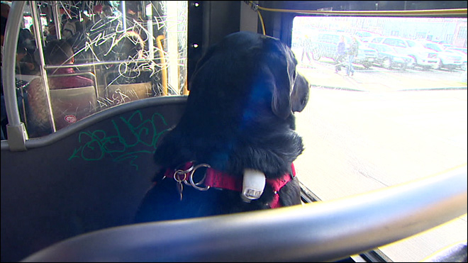 "Leginkább az ablakhoz közel foglal helyet , és nem tudtam rájönni, hogy miért," nyilatkozta Montgomery " Aztán rájöttem, hogy csak arról van szó, hogy azt figyeli, mikor kell leszállnia.Amikor meglátta a megállóját, elkezdte csóválni a farkát, majd miután megállt a busz, leugrott a székről, és berohant a kutyaparkba"