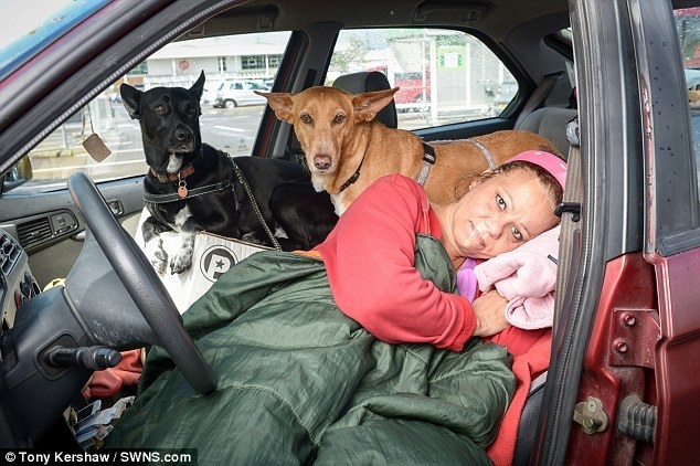 Csak egyetlen étkezést engedhetek meg magamnak naponta, azért, hogy a kutyáim ne éhezzenek – mondja az 57 éves hölgy, aki negyedik hónapja tölti mindennapjait az utcán. Egy kis Alfa Romeon osztoznak két kutyájával Robbie-val és Cleoval, akik jóban-rosszban kitartanak szeretett gazdájuk mellett. Hillary Barrows 2015. januárjában tért vissza Kentbe, azelőtt Európában dolgozott angoltanárként. Hazaérkezése után albérletbe költözött, mivel azt hitte hamar talál munkát. De ez elmaradt, és három hét után a pénzéből is kifogyott, így az utcára került. Egy segélyszervezetnél kapott volna szállást, de ők az állatokat nem látták szívesen. A tanárnő ezért úgy döntött, hogy amíg nem talál munkát autójában fog élni, és nem adja fel szeretett társait, akiket korábban európai útjain mentett. Most egy nonstop üzemelő parkoló a menedéke, és munkát keres.