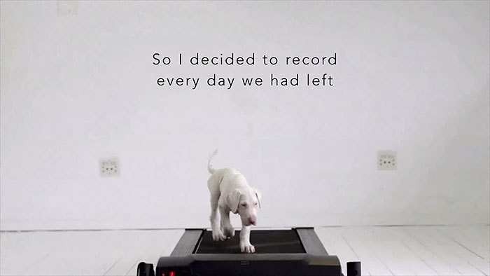 Egy lelkes gazdi, Dave Meinart eldöntötte, nem fogja hagyni, hogy kedvence élete a szemei előtt peregjen le. Minden nap filmre vette, ahogy kutyája, Pegasus a futópadon sétál. S hogy mi lett az eredmény? Egy magával ragadó timelapse (idő múlását érzékeltető filmfelvétel), amely még a legkeményebb fickót is könnyedén megríkatja.