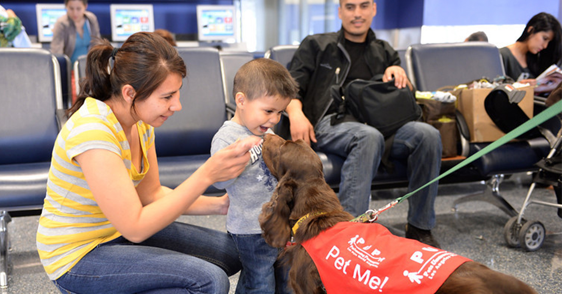 “Nagyszerű találkozni velük, mellettük a gyerekek is nyugodtabbá válnak. Kicsit olyan érzés, mintha otthon lennénk, holott egy reptéren vagyunk.” - lelkendezett Claire. Pontosan ez a gondolat jár a LAX vezetőinek fejében is, amikor elindították a Pets Unstressing Passengers ("utasokat nyugtató házikedvencek"), röviden PUP programot 2013-ban.