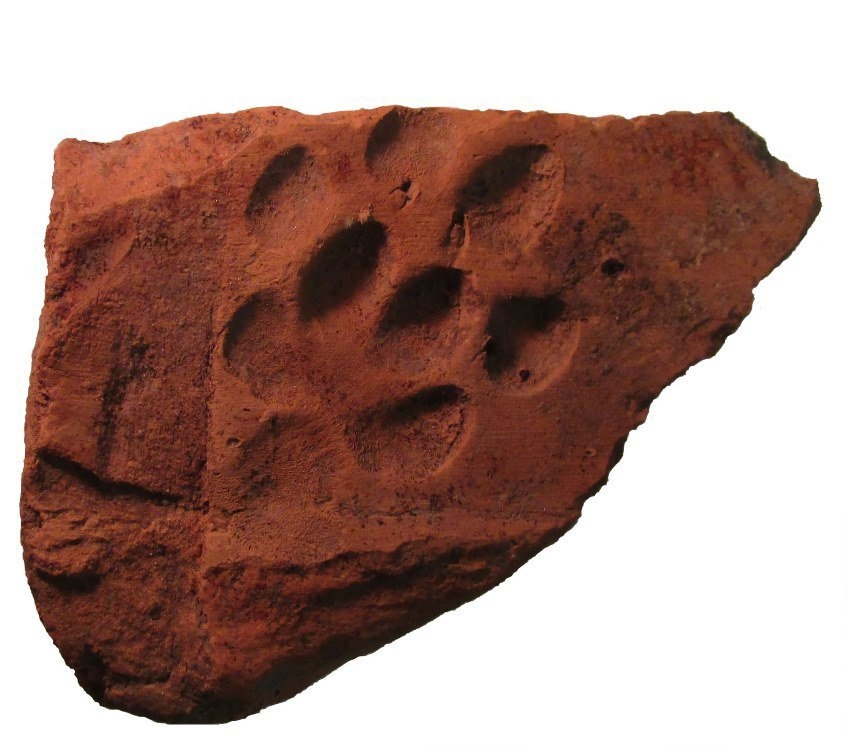 Azonban nemcsak a római katonák hagyták a nyomukat a csapatnevük feltüntetésével az építőanyagon, hanem a tábor környékén található állatok is, megörökítve magukat az utókor számára. A lábnyomokat megőrző legalább hat darab tetőfedő cserép, azaz tegula töredéke az egykori épület közepén, egy omladékban kerültek elő. Novotnik Ádám, az ásatáson résztvevő régész elmondta, hogy a frissen előkészített, még puha agyagcserepeket kiégetés előtt kitették a földre száradni, és minden bizonnyal még a bőrkeménység elérése előtt léphetett rájuk egy vagy akár több, éppen arra mászkáló állat, amivel a maga módján beírta magát a történelembe. Szerinte a – sok esetben egymásba mosódó – nyomok kutyafélére, de leginkább kutyára utalnak, de némelyik téglán látható jelek alapján a „rókajárás” sem lehet kizárt, azonban ehhez még további vizsgálatok szükségesek. Az ásatáson előkerült állatcsontok mellett ezek a tetőfedő cserepek további értékes forrást nyújthatnak a régészeti állattannal foglalkozó archeozoológusoknak ahhoz, hogy milyen lehetett a korabeli fauna és állattartás a lelőhelyen és környékén.