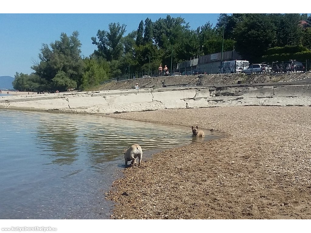 A Horányi Rév melletti partszakaszon a kutyák a vízben, a gazdik a parton hűsölhetnek a meleg napokon. A part mellett büfék is várják a gazdikat.