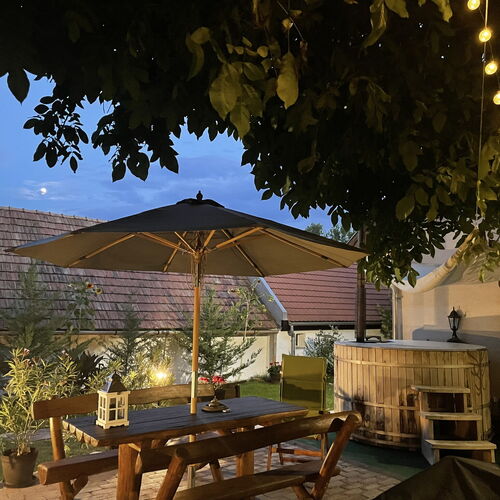 - Szolgáltatások: Korlátlan teafogyasztás, Korlátlan kávéfogyasztás, Welcome drink (alkoholos vagy alkoholmentes ital), Dézsafürdő, Finn szauna, Hordozható kiságy, Fürdetőkád, Asztalitenisz, Horgászás, Vasalási lehetőség, Wifi a közösségi terekben, Saját kerékpártároló, Grillezési lehetőség, Szalonnasütési lehetőség, Tárcsán sütés-főzés, Bográcsozási lehetőség, Saját parkoló, Kerthelyiség, Kerékpárkölcsönzés, Túra lehetőségek, Internet, Szaunák, Erkély/terasz, Hajszárító, Hűtőszekrény, Internetkapcsolat, WIFI, Íróasztal, Síkképernyős TV, Mikrohullámú sütő, Minibár, Kandalló, Tea-/kávéfőző, Vasaló