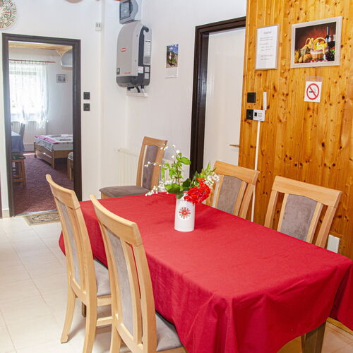 - Szolgáltatások: Borkóstolás, Saját kerékpártároló, Tárcsán sütés-főzés, Grillezési lehetőség, Bográcsozási lehetőség, Szalonnasütési lehetőség, Bébiétel melegítési lehetőség, Gyerekágynemű, Túra lehetőségek, Kiságy, Kerthelyiség, Saját parkoló, Wifi a közösségi terekben, Asztali etetőszék, Babajátékok, Játszótér, Hordozható kiságy, Fürdetőkád, Vezetékes internet a közösségi terekben, Medence, Internet, Medencék, Szabadtéri medence, Hajszárító, Hűtőszekrény, WIFI, Íróasztal, Televízió (képcsöves), Mikrohullámú sütő, Tea-/kávéfőző, Ventilátor