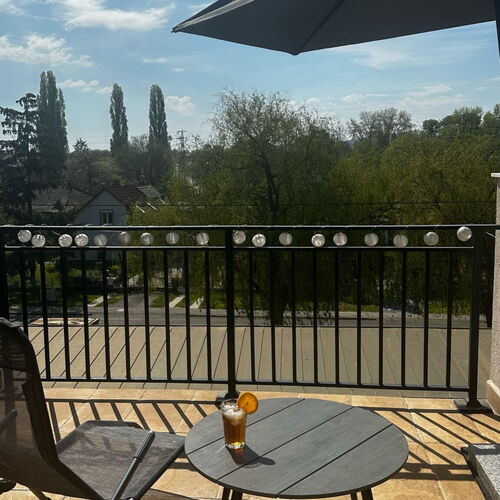 - Szolgáltatások: Túra lehetőségek, Kerékpárkölcsönzés, Kiságy, Gyerekágynemű, Bébiétel melegítési lehetőség, Asztali etetőszék, Hordozható kiságy, Játszószoba, Babajátékok, Pelenkázó, Napozóterasz, Grillezési lehetőség, Parkoló a közelben, Széf, Wifi a közösségi terekben, Vasalási lehetőség, Internet, CD/DVD-lejátszó, Erkély/terasz, Filmek, Hajszárító, Hűtőszekrény, Internetkapcsolat, WIFI, Íróasztal, Síkképernyős TV, Légkondícionálás, Mikrohullámú sütő, Mosógép, Szobaszéf, Tea-/kávéfőző, Vasaló, Törölközők, Fürdőszobai piperecikkek, Vállfák, Konyhaedények, Főzőlap, Mosogatógép, Szén-monoxid érzékelő, Ruhaszárító állvány, Okos TV, Külön bejárat, Külön munkaterület laptop-hoz
