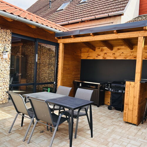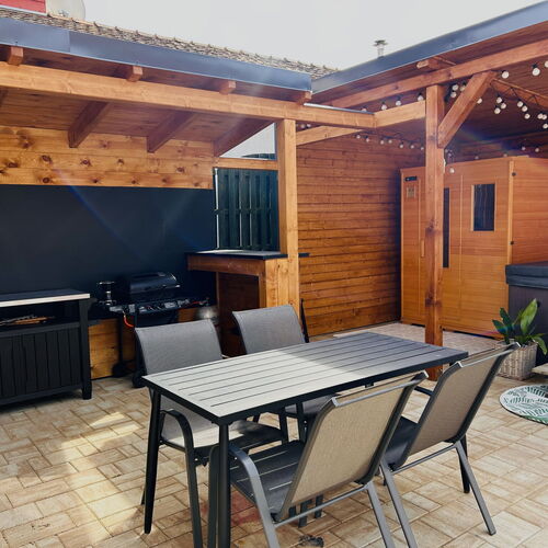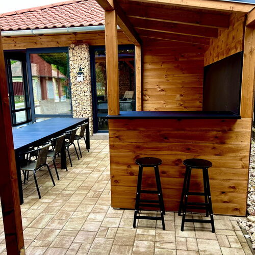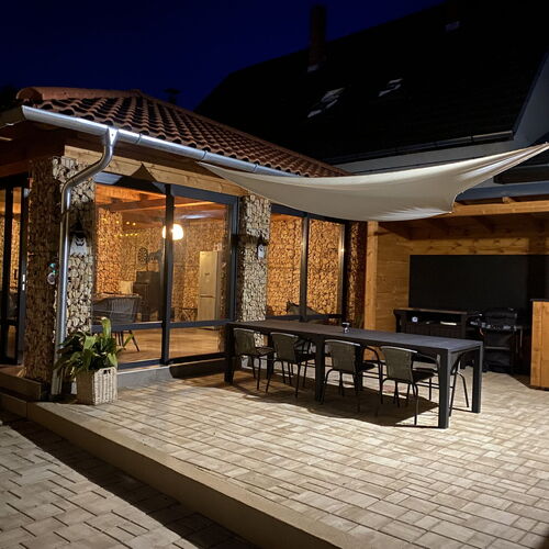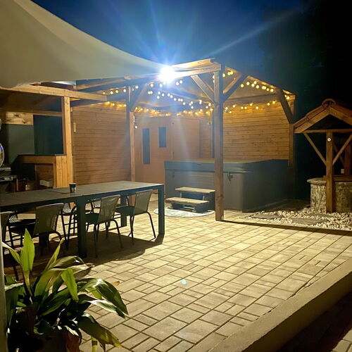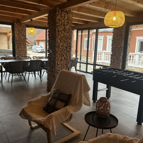 - Szolgáltatások: Játszószoba, Babajátékok, Baba etetőkészlet, Túra lehetőségek, Lovaglás, Fitness, Kiságy, Gyerekágynemű, Bébiétel melegítési lehetőség, Asztali etetőszék, Fürdetőkád, Gyerekfellépő, Hordozható kiságy, Pelenkázó, Játszótér, Gyerekmedence, Gyermekcsúszda, Fekvőmasszázs, Ülő pezsgőpad, Jacuzzi, Napozóterasz, Derékmasszázs, Masszázsfúvóka, Ülőmasszázs, Infraszauna, Bográcsozási lehetőség, Tárcsán sütés-főzés, Szalonnasütési lehetőség, Grillezési lehetőség, Kerthelyiség, Saját parkoló, Wifi a közösségi terekben, Vasalási lehetőség, Internet, Medencék, Szaunák, Szabadtéri medence, Erkély/terasz, Hajszárító, Hűtőszekrény, Internetkapcsolat, WIFI, Síkképernyős TV, Légkondícionálás, Mikrohullámú sütő, Mosógép, Kandalló, Pezsgőfürdő, Tea-/kávéfőző, Vasaló