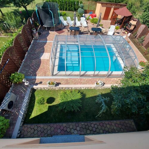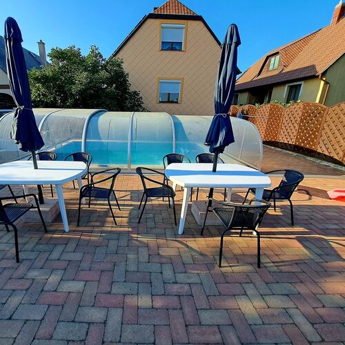 - Szolgáltatások: Fürdő belépő kedvezmény, Ajándék üveg bor bekészítés, Dézsafürdő, Fekvőmasszázs, Nyakzuhany, Wifi a közösségi terekben, Kávézó, Saját kerékpártároló, Vezetékes internet a közösségi terekben, Kerthelyiség, Saját strand, Grillezési lehetőség, Szalonnasütési lehetőség, Bográcsozási lehetőség, Infraszauna, Ülőmasszázs, Masszázsfúvóka, Derékmasszázs, Napozóterasz, Csúszda, Gyermekcsúszda, Baba etetőkészlet, Játszótér, Babajátékok, Hordozható kiságy, Járóka, Asztali etetőszék, Bébiétel melegítési lehetőség, Gyerekágynemű, Kiságy, Fitness, Túra lehetőségek, Saját parkoló, Ülő pezsgőpad, Trambulin, Jacuzzi, Medence, Internet, Medencék, Szaunák, Szabadtéri medence, Erkély/terasz, Hajszárító, Hűtőszekrény, Internetkapcsolat, WIFI, Televízió (képcsöves), Légkondícionálás, Mikrohullámú sütő, Mosógép, Pezsgőfürdő, Tea-/kávéfőző