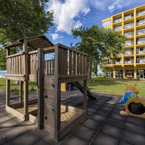 - Szolgáltatások: Játszószoba, Asztalitenisz, Vezetékes internet a közösségi terekben, Bár, Wifi a közösségi terekben, Asztali etetőszék, Bébiétel melegítési lehetőség, Fürdetőkád, Játszótér, Kiságy, Biliárd, Minigolf, Kerthelyiség, Lift, Lobby, Saját strand, Parkoló a közelben, Internet, Erkély/terasz, Hűtőszekrény, Íróasztal, Síkképernyős TV, Légkondícionálás