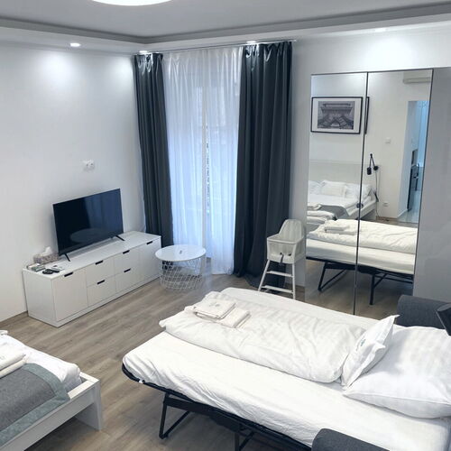 - Szolgáltatások: Kiságy, Asztali etetőszék, Fűtés, Lift, Wifi a közösségi terekben, Internet, Hajszárító, Hűtőszekrény, Internetkapcsolat, WIFI, Síkképernyős TV, Légkondícionálás, Mikrohullámú sütő, Mosógép, Tea-/kávéfőző