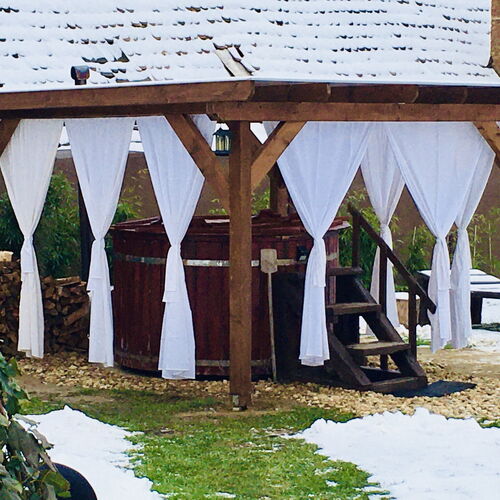 - Szolgáltatások: Dézsafürdő, Grillezési lehetőség, Tárcsán sütés-főzés, Bográcsozási lehetőség, Parkoló a közelben, Fűtés, Kiságy, Gyerek animációs programok, Gyerekágynemű, Asztali etetőszék, Fürdetőkád, Trambulin, Hordozható kiságy, Baba etetőkészlet, Horgászás, Szalonnasütési lehetőség, Wifi a közösségi terekben, Saját parkoló, Kerthelyiség, Saját strand, Filagória, Csúszda, Gyermekcsúszda, Animációs programok, Játszótér, Játszóház, Foci, Sportpálya, Lovaglás, Túra lehetőségek, Vadászat, Internet, Filmek, Hűtőszekrény, Internetkapcsolat, WIFI, Síkképernyős TV, Légkondícionálás, Mikrohullámú sütő, Pezsgőfürdő, Tea-/kávéfőző