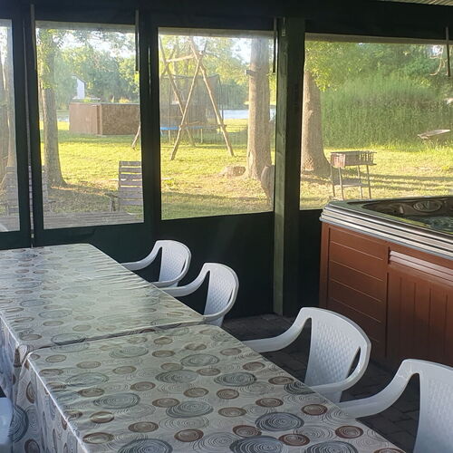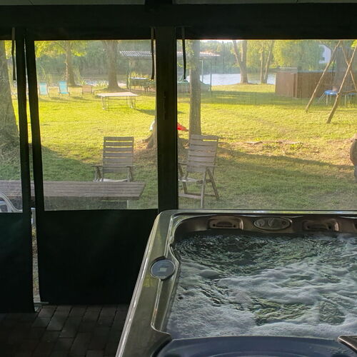 - Szolgáltatások: Szalonnasütési lehetőség, Tárcsán sütés-főzés, Bográcsozási lehetőség, Fekvőmasszázs, Ülő pezsgőpad, Jacuzzi, Buzgár, Derékmasszázs, Masszázsfúvóka, Ülőmasszázs, Nyakzuhany, Filagória, Saját kerékpártároló, Fűtés, Túra lehetőségek, Vizibicikli kölcsönzés, Asztalitenisz, Kerékpárkölcsönzés, Horgászás, Bébiétel melegítési lehetőség, Asztali etetőszék, Trambulin, Játszótér, Medence, Grillezési lehetőség, Saját stég, Saját strand, Kerthelyiség, Saját parkoló, Wifi a közösségi terekben, Internet, Medencék, Szabadtéri medence, Erkély/terasz, Hűtőszekrény, WIFI, Síkképernyős TV, Légkondícionálás, Mikrohullámú sütő, Kandalló, Pezsgőfürdő, Tea-/kávéfőző, Törölközők, Vállfák, Konyhaedények, Főzőlap, Mosogatógép, Szén-monoxid érzékelő, Külön bejárat