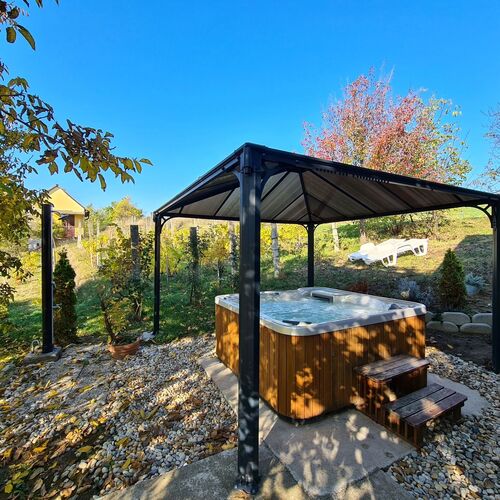 - Szolgáltatások: Napozóterasz, Fűtés, Ajándék csokoládé, Túra lehetőségek, Gyerekkerékpár kölcsönzés, Grillezési lehetőség, Kerthelyiség, Saját parkoló, Asztali etetőszék, Bográcsozási lehetőség, Masszázspad, Ülőmasszázs, Masszázsfúvóka, Derékmasszázs, Ülő pezsgőpad, Fekvőmasszázs, Szalonnasütési lehetőség, Játszótér, Bébiétel melegítési lehetőség, Finn szauna, Jacuzzi, Szaunák, Erkély/terasz, Hajszárító, Hűtőszekrény, Síkképernyős TV, Légkondícionálás, Mikrohullámú sütő, Tea-/kávéfőző, Cserépkályha, Törölközők, Vállfák, Konyhaedények, Főzőlap, Külön bejárat