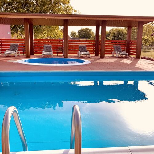 - Szolgáltatások: Welcome drink (alkoholos vagy alkoholmentes ital), Ajándék üveg bor bekészítés, Kiságy, Tenisz, Bográcsozási lehetőség, Grillezési lehetőség, Vezetékes internet a közösségi terekben, Saját parkoló, Wifi a közösségi terekben, Játszótér, Bobozás, Autóbérlés, Vizibicikli kölcsönzés, Kosárlabda, Kerékpárkölcsönzés, Vadászat, Lovaglás, Foci, Legközelebbi élelmiszer bolt, Legközelebbi nem saját étterem, Trambulin, Horgászás, Hordozható kiságy, Napozóterasz, Úszómedence, Internet, Medencék, Szabadtéri medence, Erkély/terasz, Hajszárító, Hűtőszekrény, Internetkapcsolat, WIFI, Síkképernyős TV, Légkondícionálás, Mikrohullámú sütő, Tea-/kávéfőző, Vasaló