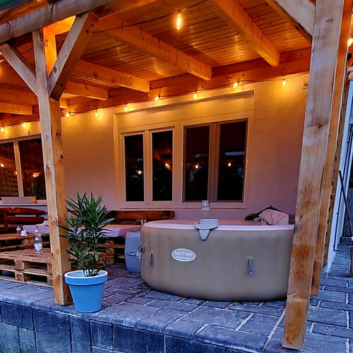 - Szolgáltatások: Jacuzzi, Asztali etetőszék, Bográcsozási lehetőség, Szalonnasütési lehetőség, Grillezési lehetőség, Saját parkoló, Wifi a közösségi terekben, Internet, Erkély/terasz, Hajszárító, Hűtőszekrény, Internetkapcsolat, WIFI, Síkképernyős TV, Légkondícionálás, Mikrohullámú sütő, Mosógép, Pezsgőfürdő, Tea-/kávéfőző, Vasaló, Ventilátor, Fürdőszobai piperecikkek, Konyhaedények, Főzőlap, Ruhaszárító állvány