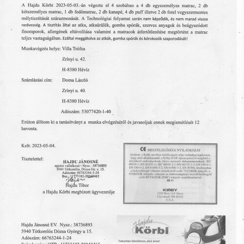 - Fizetési módok: Készpénz, Átutalás